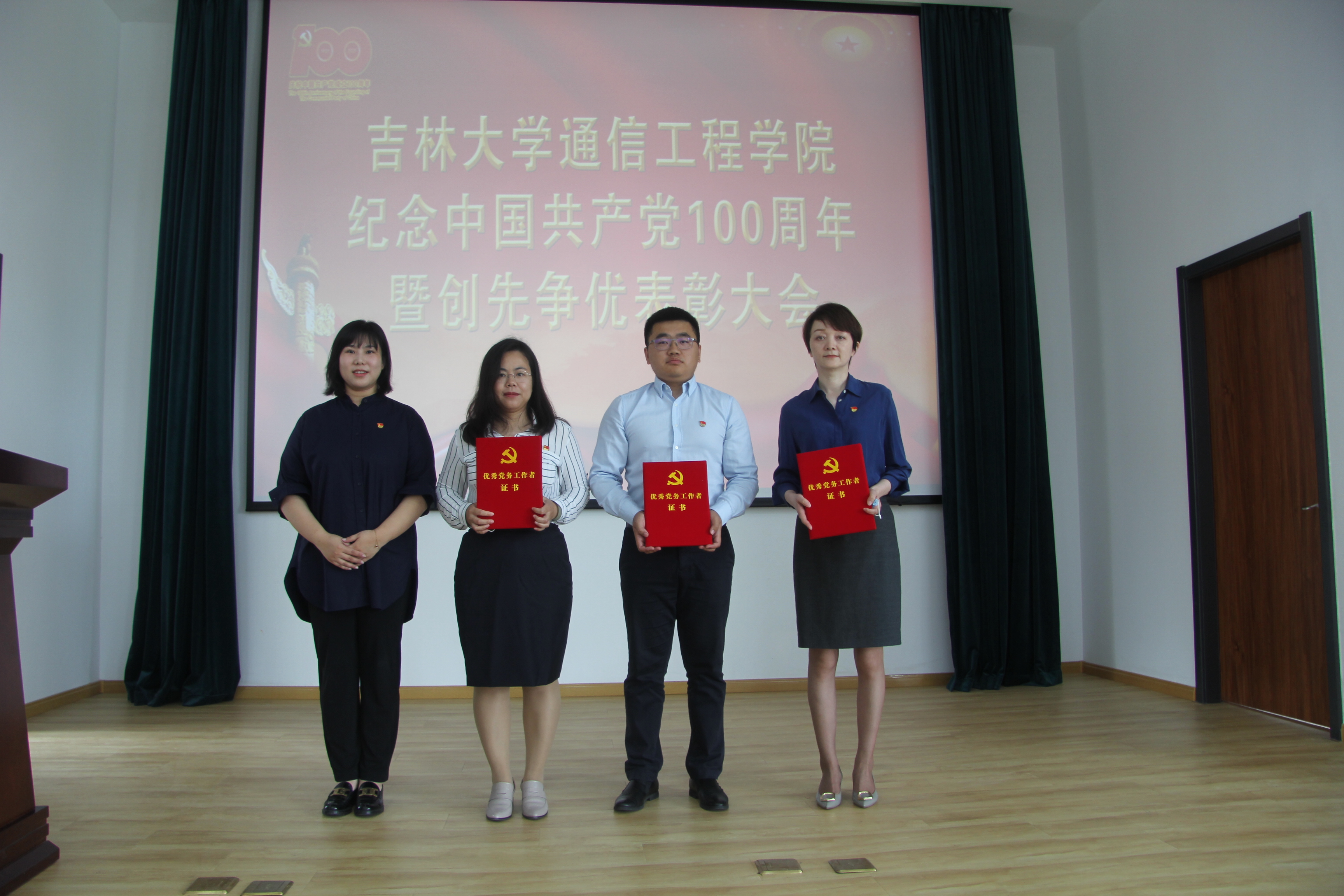 党委副书记刘星彤宣读了《优秀共产党员、优秀党务工作者和先进党支部的表彰决定》。随后,班子成员、党委委员分别向受表彰的优秀共产党员、优秀党务工作者和先进党支部代表颁发了荣誉证书。优秀教师党员代表李东琦发言,她表示,今后会将这份荣誉作为工作的更高目标,将把思政工作循序渐进地融入学生的生活,启迪学生的人生,鼓舞学生的精神,发挥学生智慧的光芒。优秀学生党员代表丁晓东发言,他表示,将继续充分发挥党员的先锋模范作用,以自己的实际行动,践行中共党员的义务和使命。先进党支部代表卢辉遒发言,他表示将继续发挥支部堡垒作用,加强政治思想工作促进教书育人,以昂扬姿态奋力开启全面建设社会主义现代化国家新征程,为下一个百年奋斗目标勇往直前、添砖加瓦。